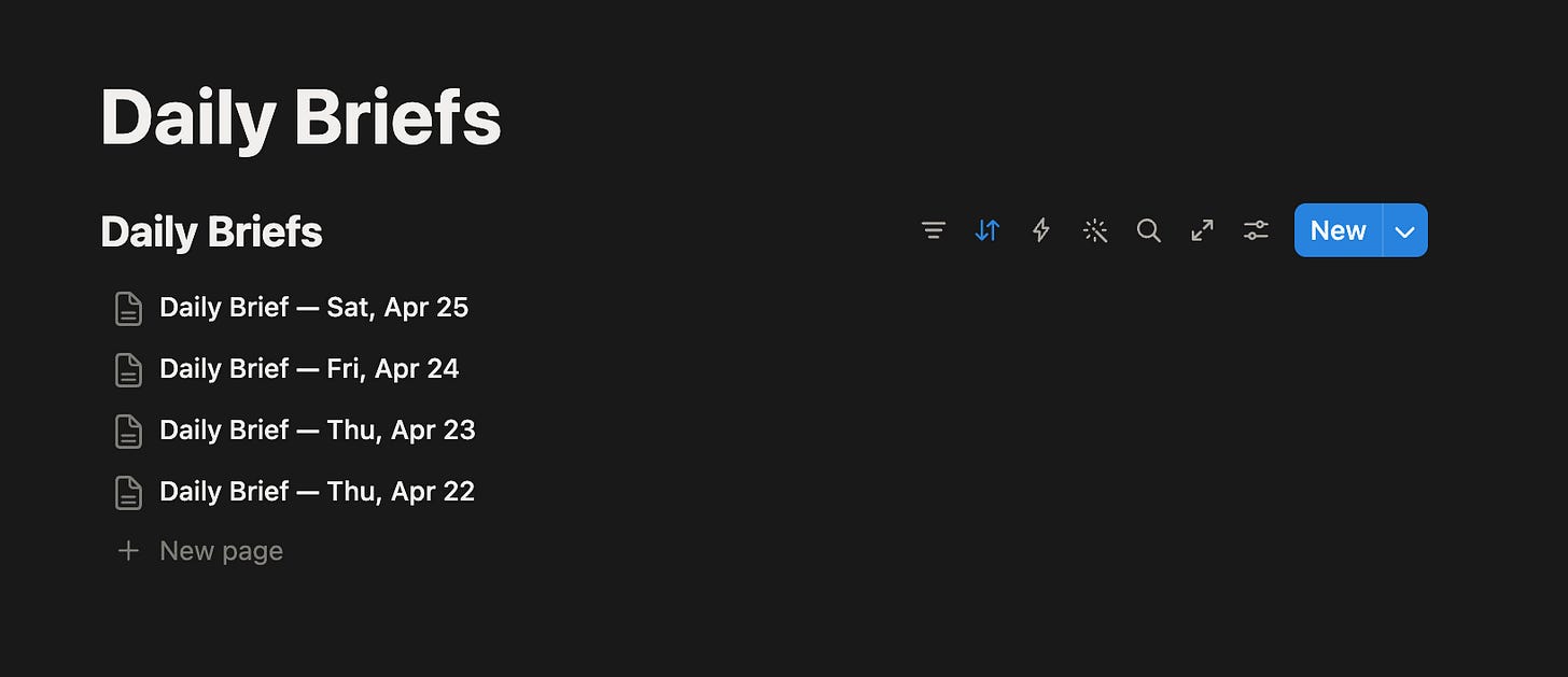 The daily brief is the morning layer on top of that. Every weekday it should: