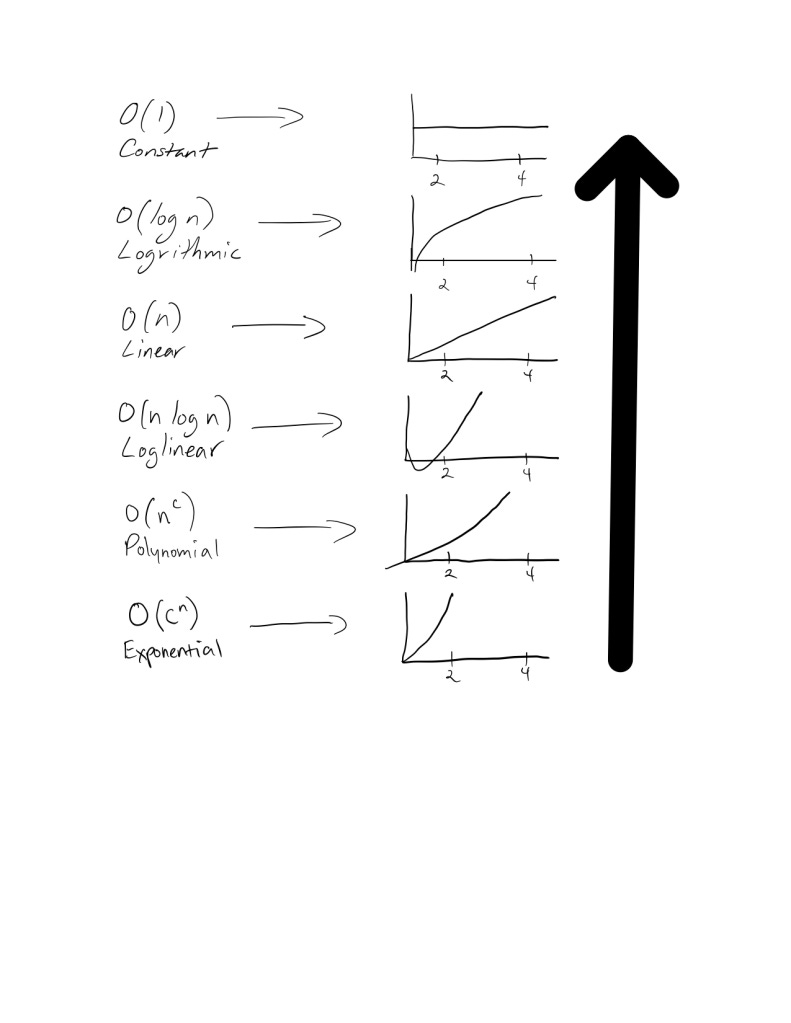- Constant: no matter how we increase the size of the input, it takes the same amount of time