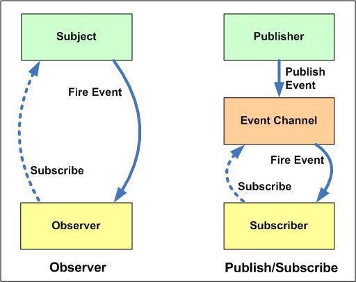 To put it simply, let's say you subscribe to a particular magazine that you like. You choose your delivery date to be on the first of every single month. So the 1st rolls around and you are notified of the new monthly edition of your subscription. In this case, the magazine is the subject, the first of the month is the triggered event that sends the new edition of their magazine to its dependents, or subscribers. So whats the difference between the observer pattern and pub-sub architecture?