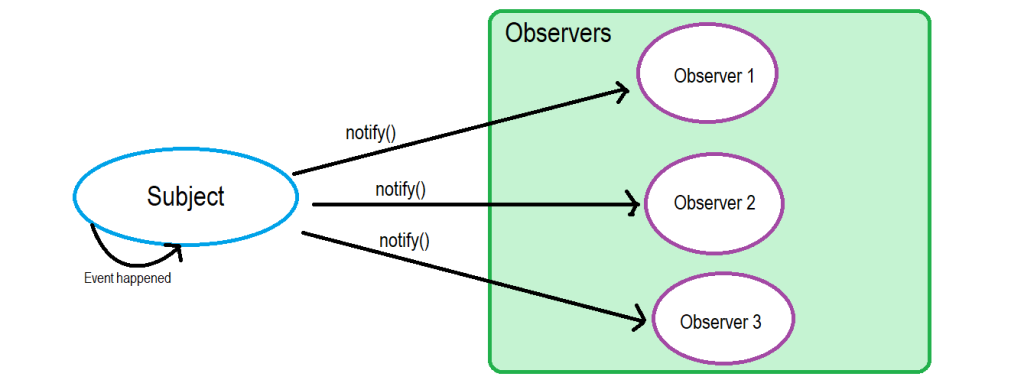 “The observer pattern is a software design pattern in which an object, called the subject, maintains a list of its dependents, called observers, and notifies them automatically of any state changes, usually by calling one of their methods.” - Wikipedia definition