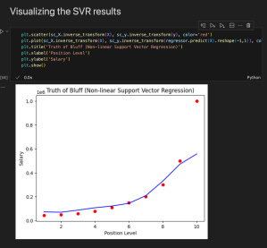 I recently completed a section in an amazing machine learning course I am taking on Support Vector Regression and thought I would share the dataset, the code and the visualization of the results below.