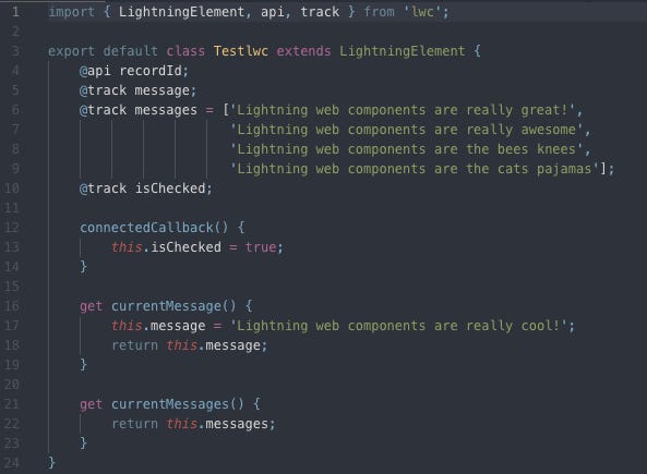 Okay thats cool but what is @api and @track? Those are called decorators, which is just a fancy word to say that these properties are reactive, meaning that when the property value changes, the component’t HTML template re-renders. While we are on the subject, let’s dive into the function of these two decorators.