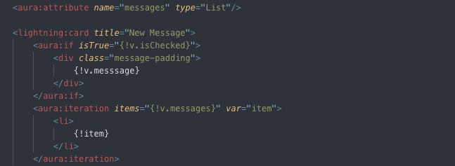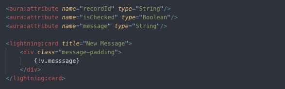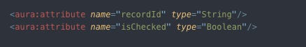 Typically when starting your Lightning component, you would define a few aura attributes that you know you’ll work with.